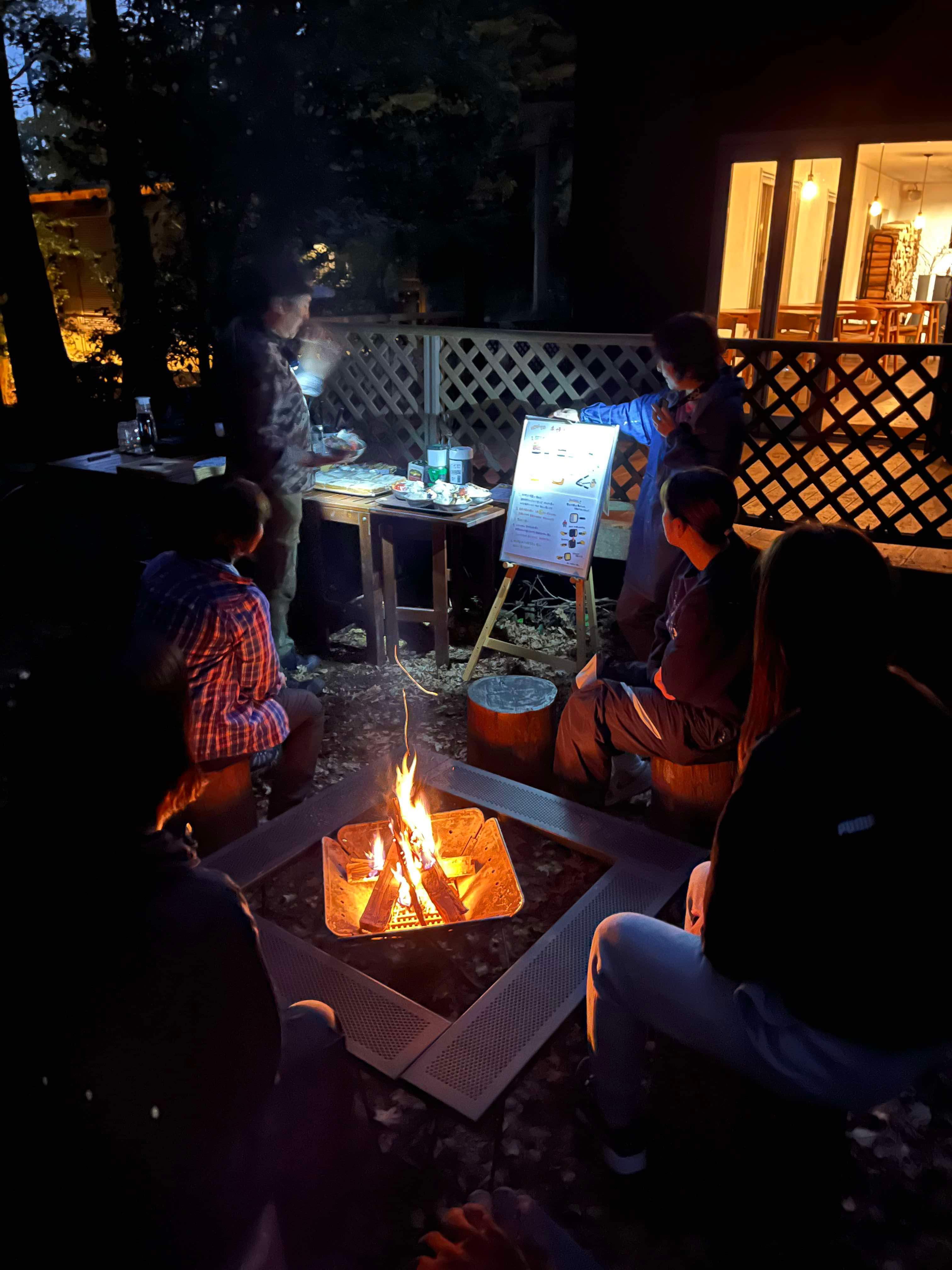 例年は六甲山小学校の火入れ式の真似っこをして「二十四節期 霜降の日」の頃に火入れ式を行っていましたが、今年は少しゆっくり目にクリスマスツリー点灯式と合同で行いました。