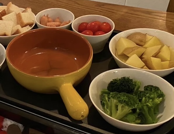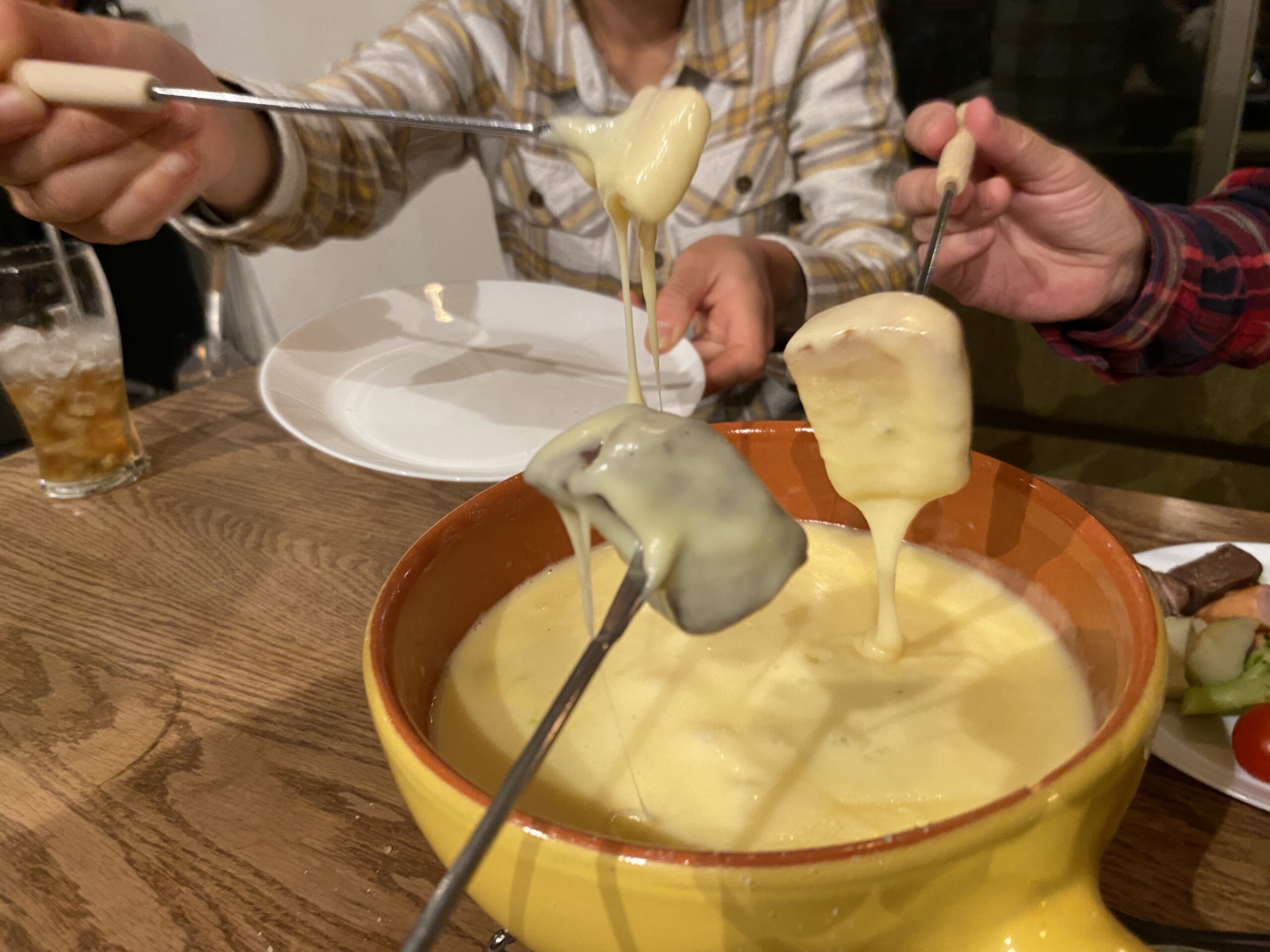 ・メニュー:チーズフォンデュ、チキン手羽元はちみつロースト、トマトファルシ