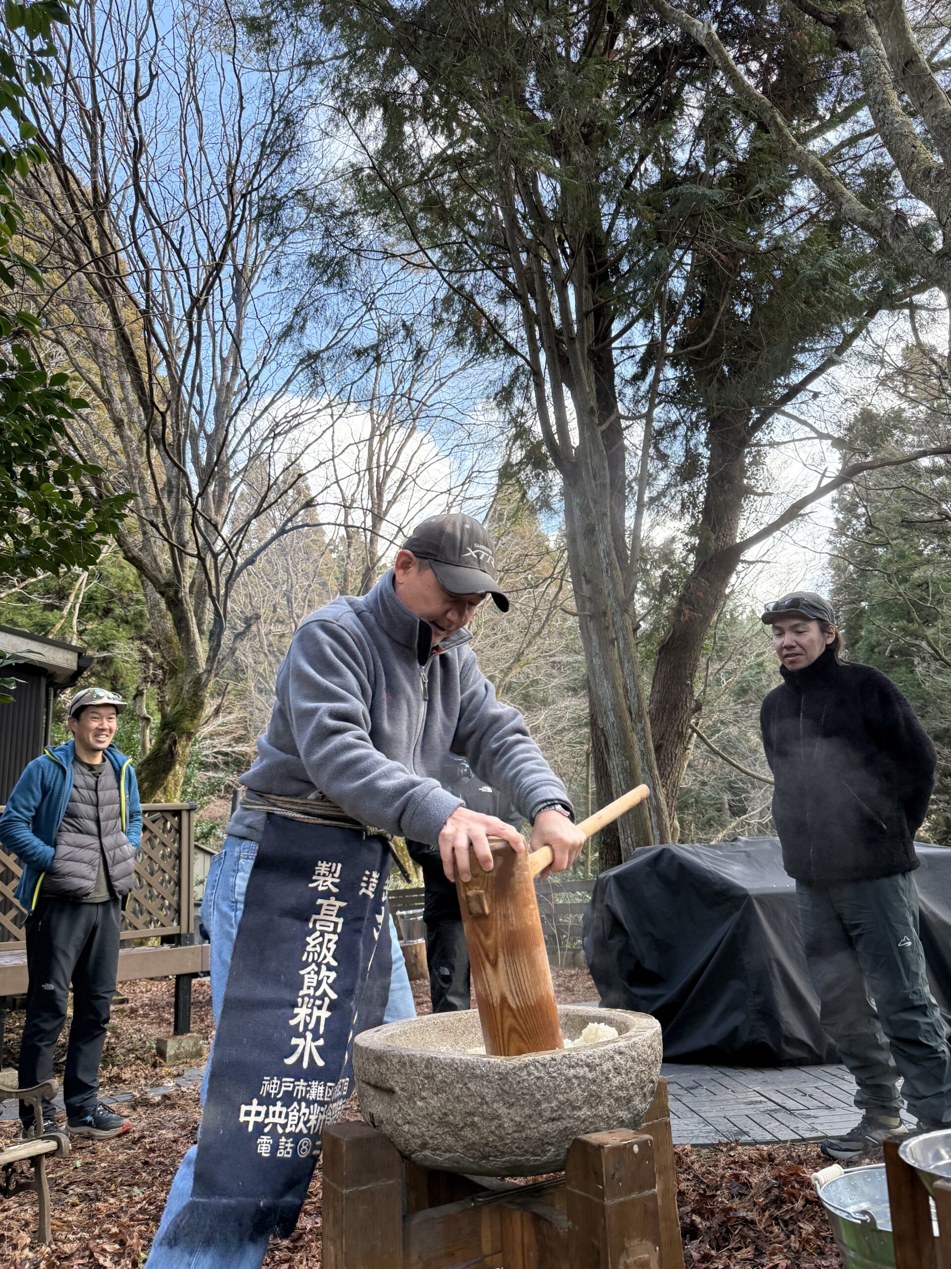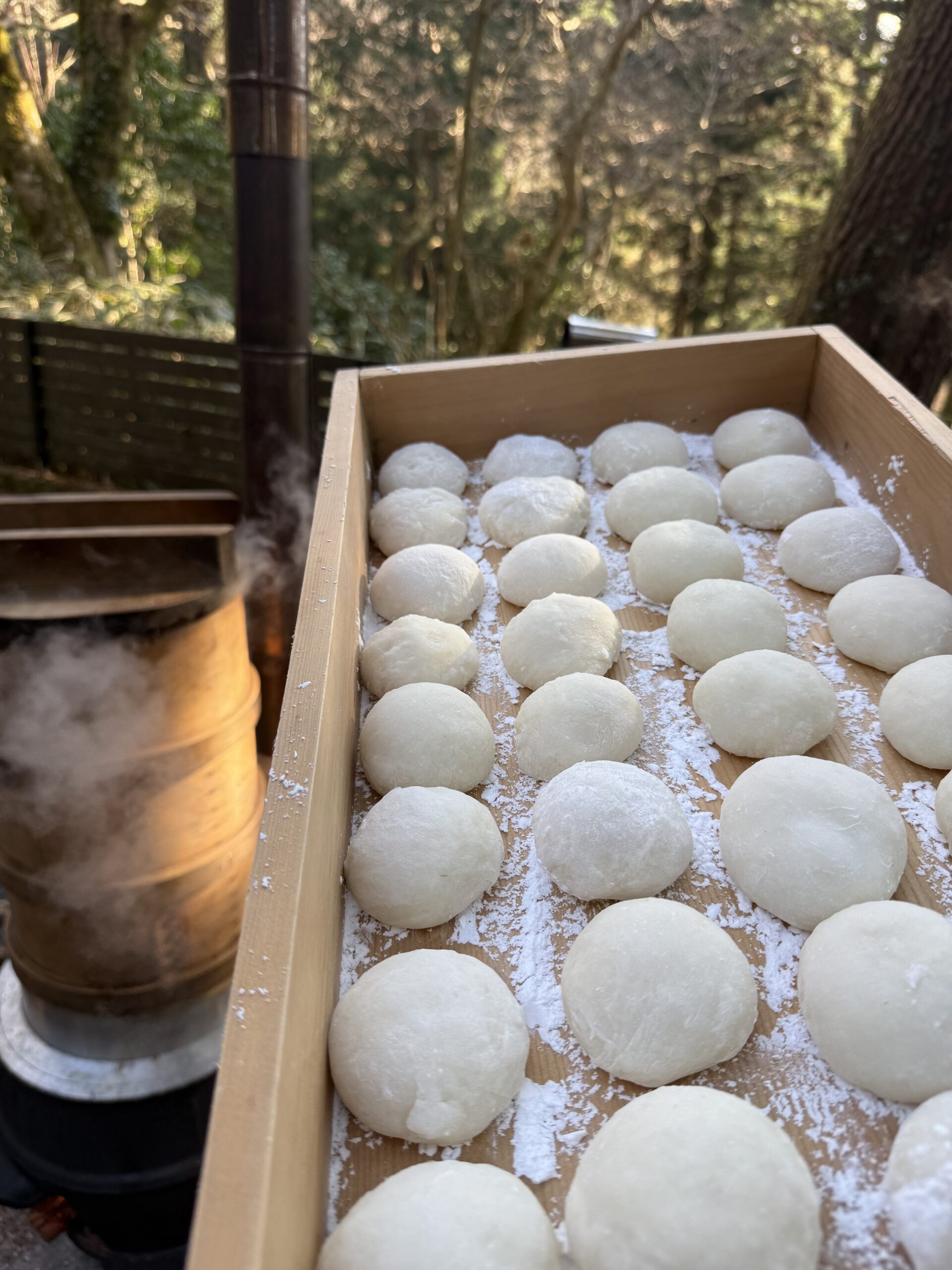 早朝からもち米を蒸しはじめ、今回は4臼つきました。