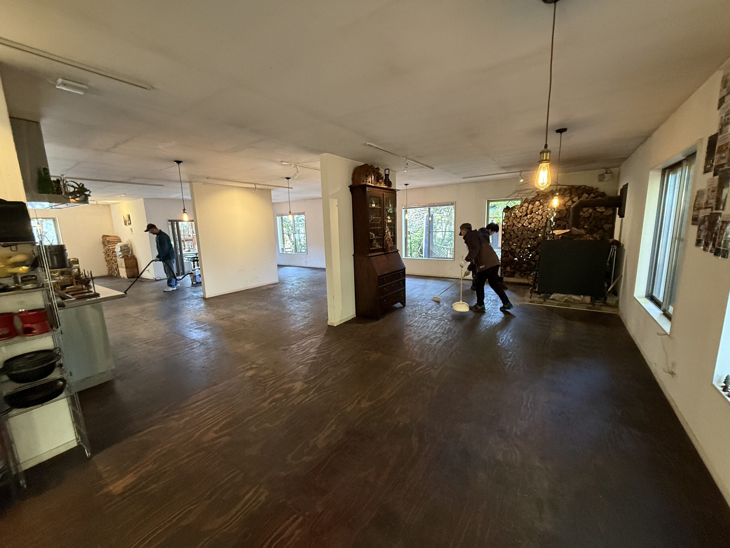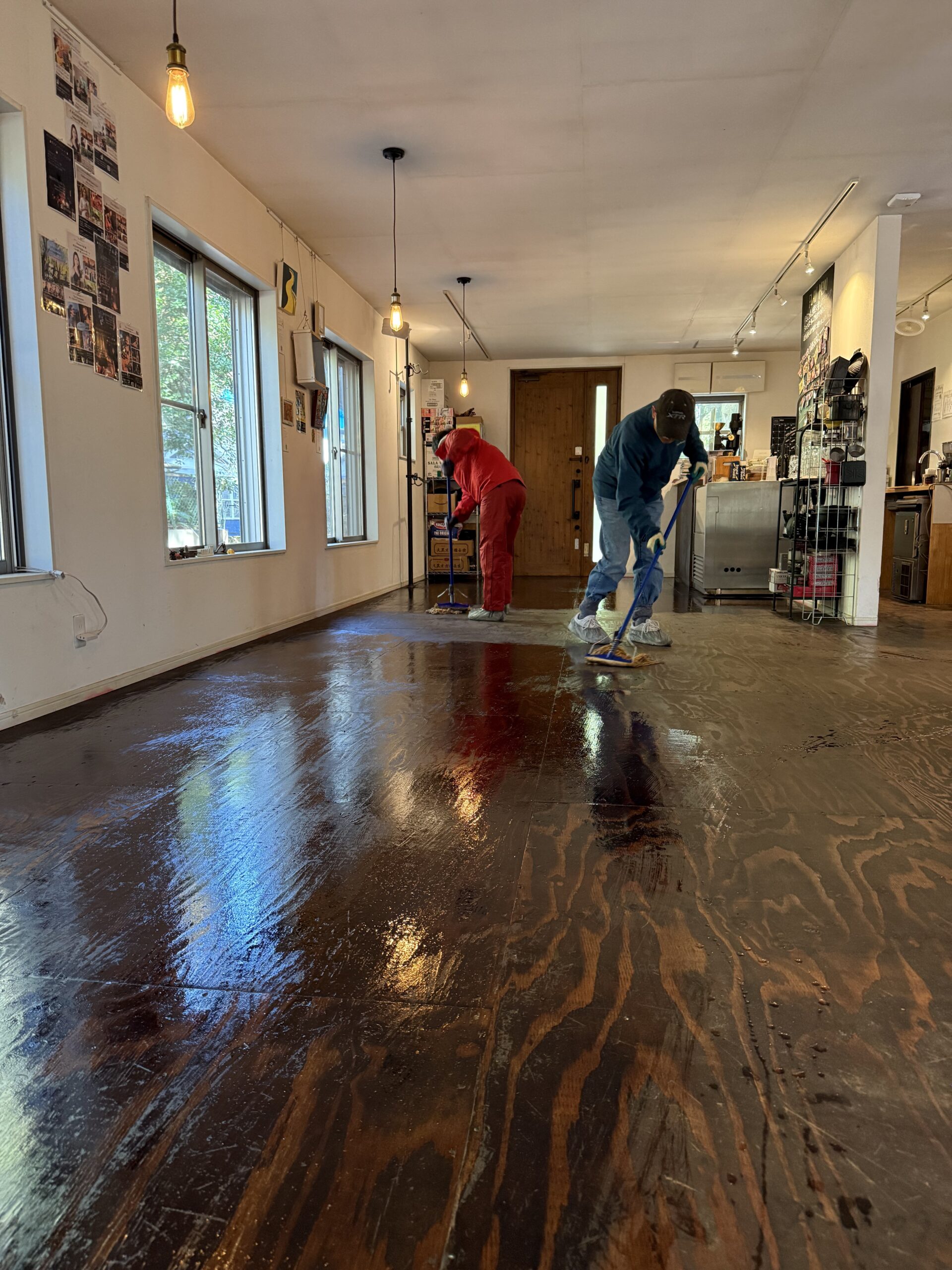 先日、屋内の家具を全部外に出して屋内の大掃除。年一回の床の油引きを行いました。