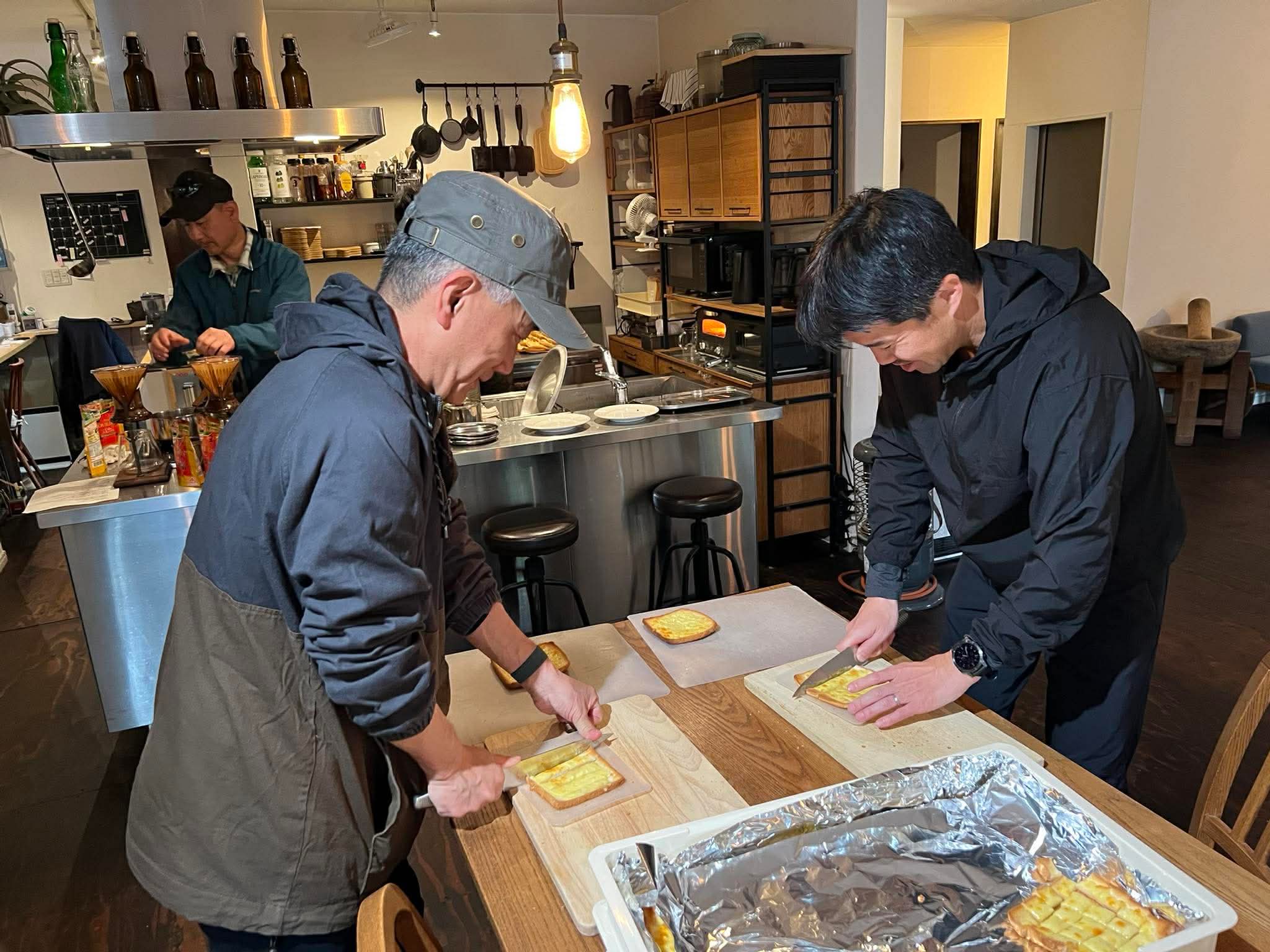 土曜日の夕方から準備して、いつもの温かいチーズパンスープとコーラでランナーをお迎えしました