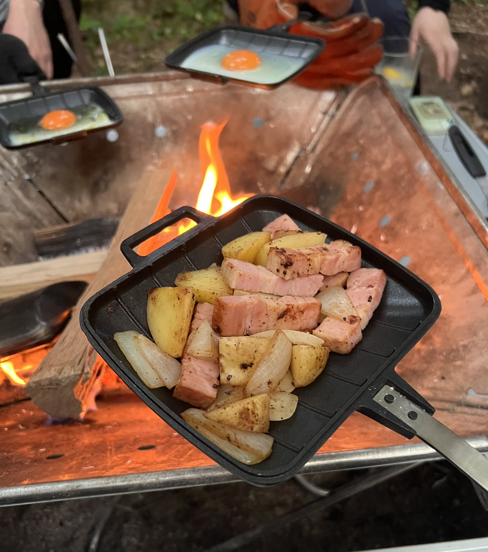 ジャーマンポテトもホットサンドメーカーでクックします(当日の熱源は焚火ではなく炭火)